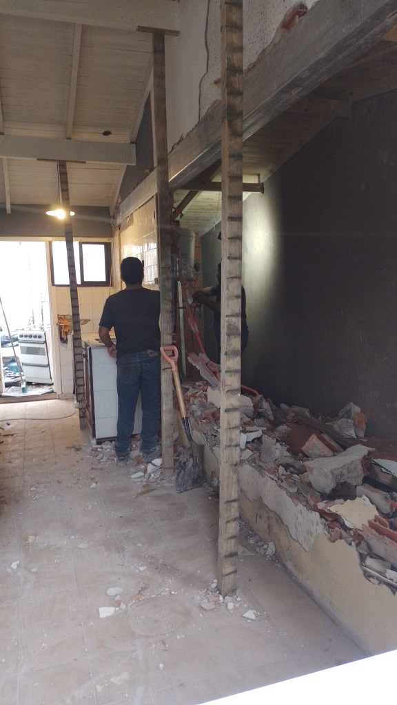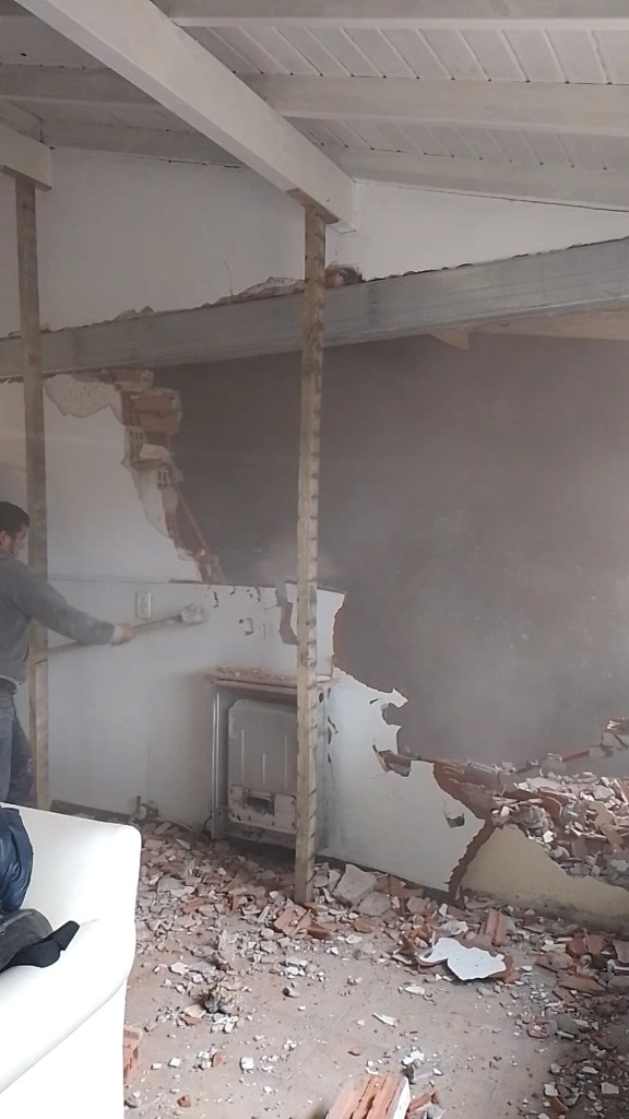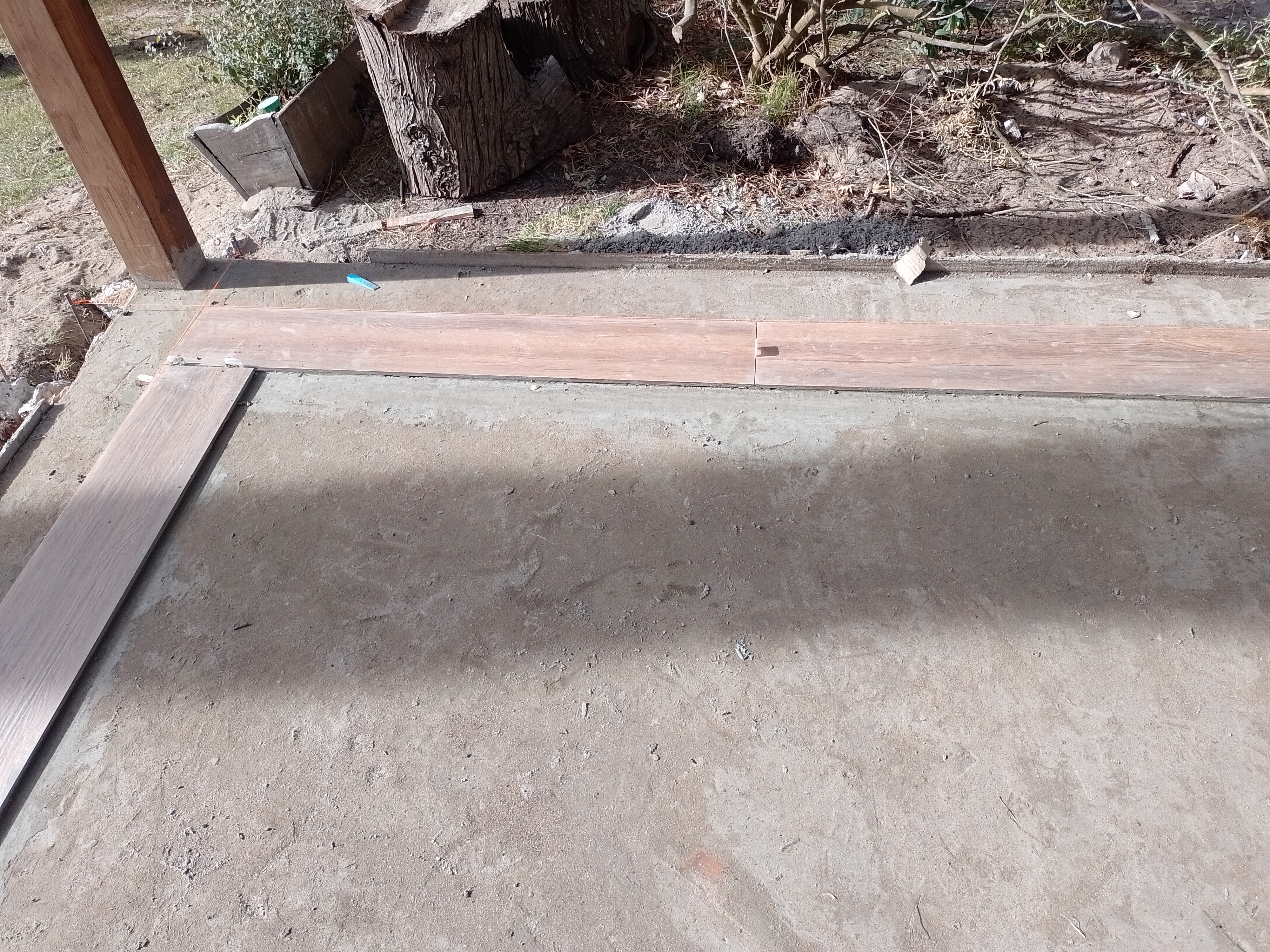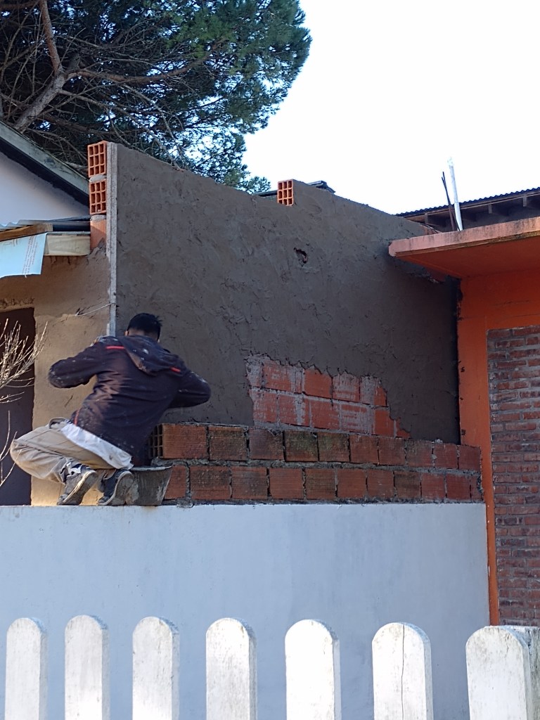 Construcción húmeda Carilo- Chorlo y Ñandubay- bases, encadenado, carpeta y colocación de porcelanato estilo americano Obra realizada en Carilo, demolición de vereda- nivelación- hormigon- fajas y carpeta- colocación de porcelanato con sistema americano.