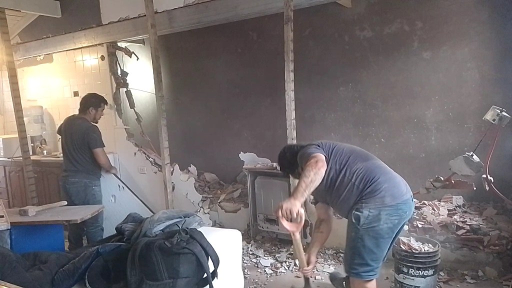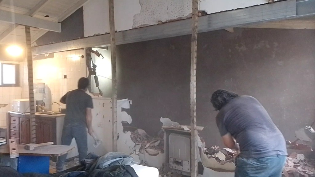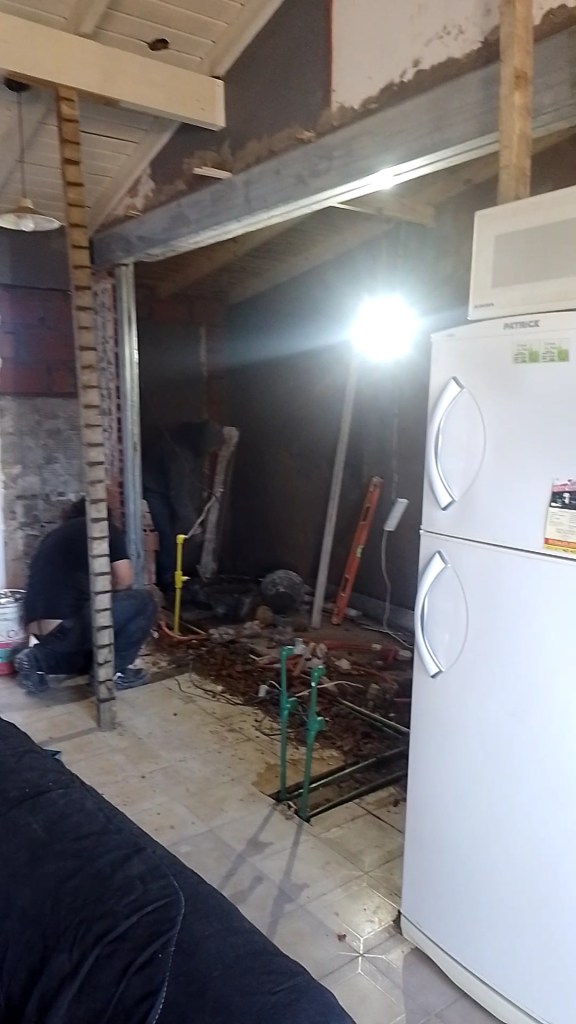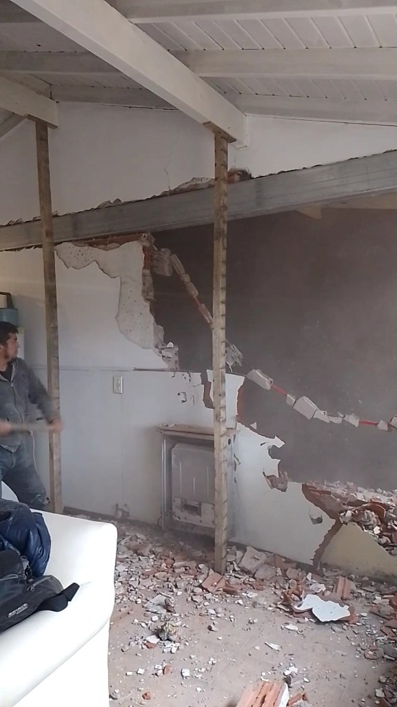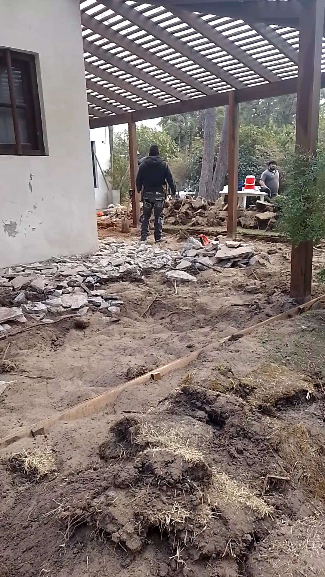 Construcción húmeda Carilo- Chorlo y Ñandubay- bases, encadenado, carpeta y colocación de porcelanato estilo americano Obra realizada en Carilo, demolición de vereda- nivelación- hormigon- fajas y carpeta- colocación de porcelanato con sistema americano.